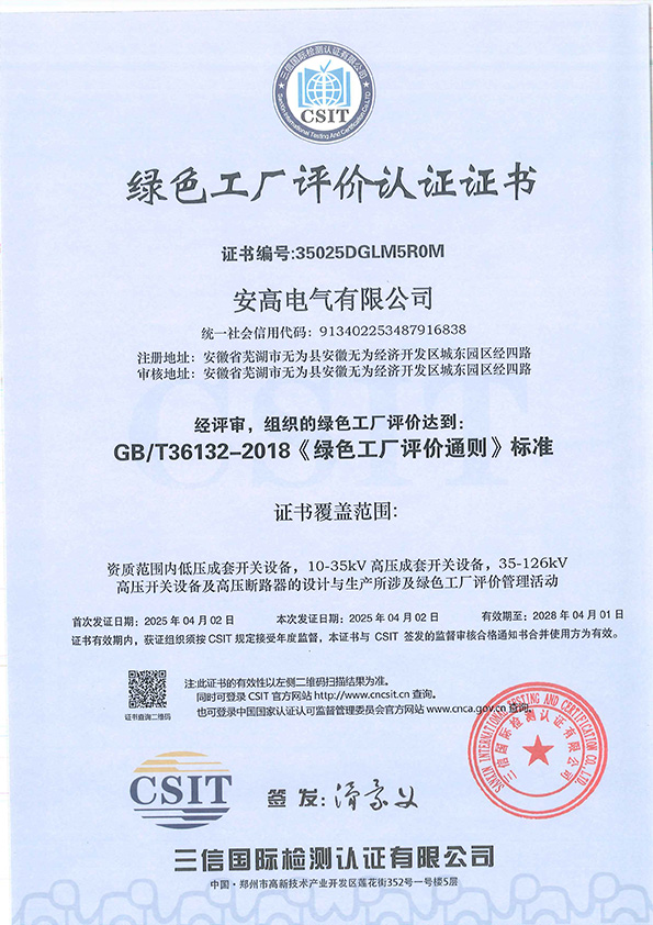 綠色工廠評(píng)價(jià)認(rèn)證證書
