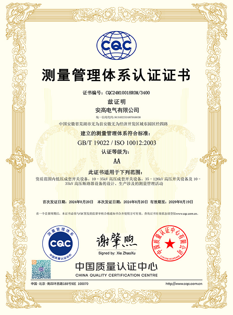測(cè)量管理體系認(rèn)證證書