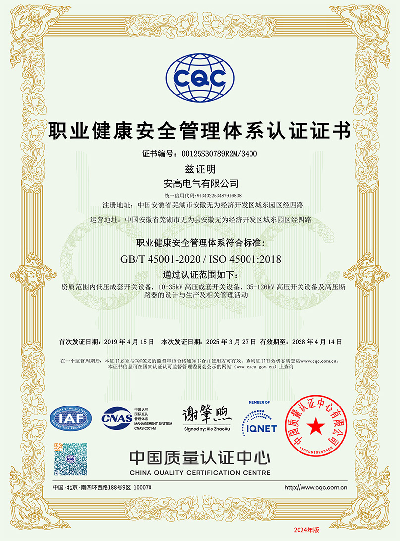 職業(yè)健康安全管理體系認(rèn)證證書