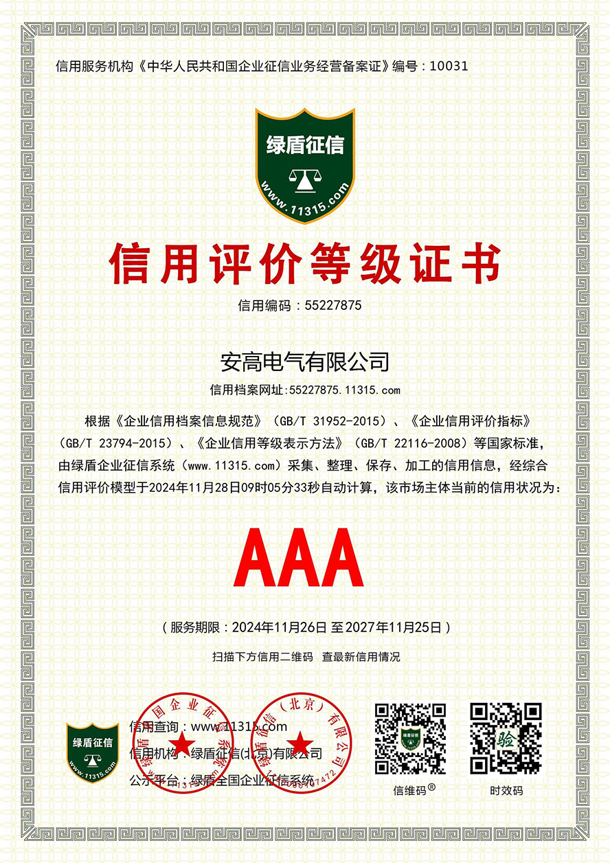 信用評(píng)價(jià)等級(jí)證書