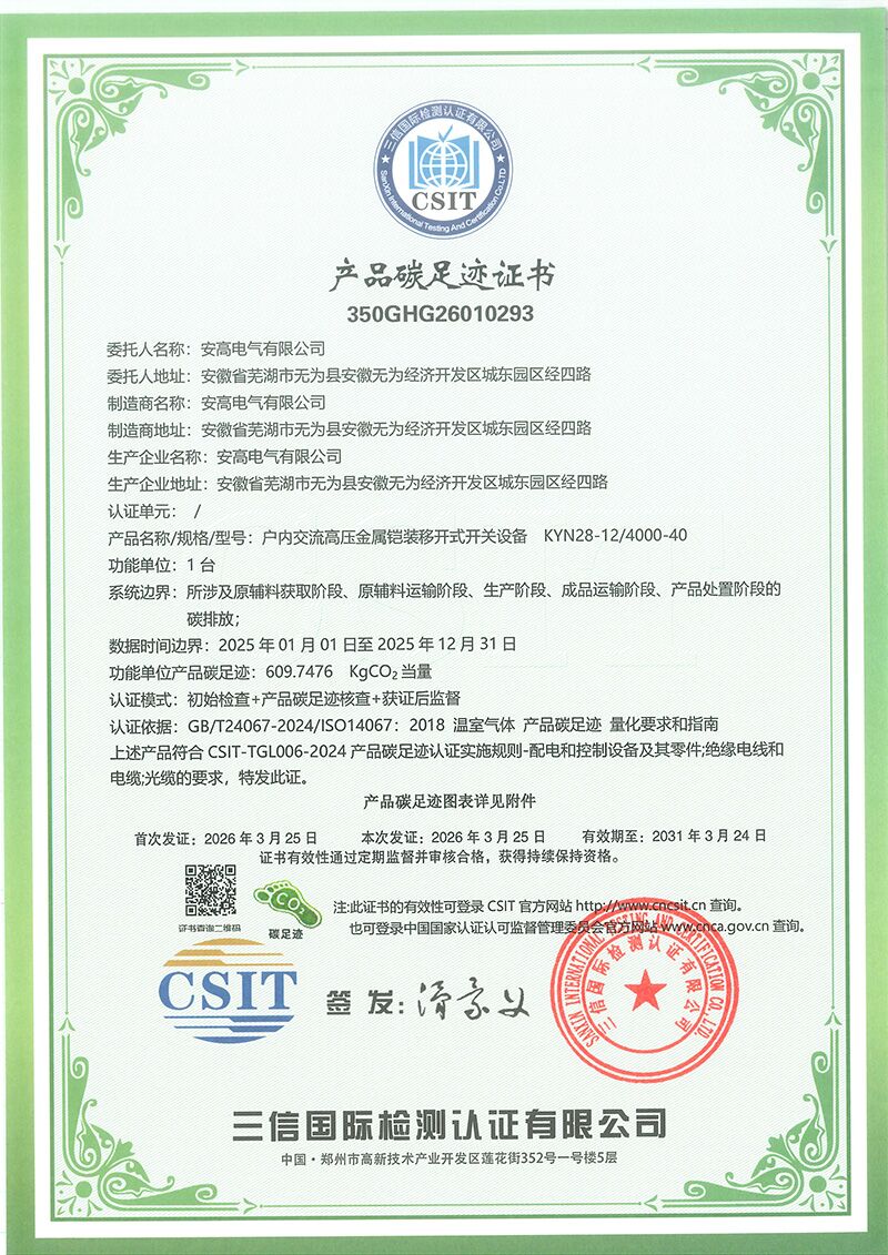 高壓開關(guān)設(shè)備產(chǎn)品碳足跡證書